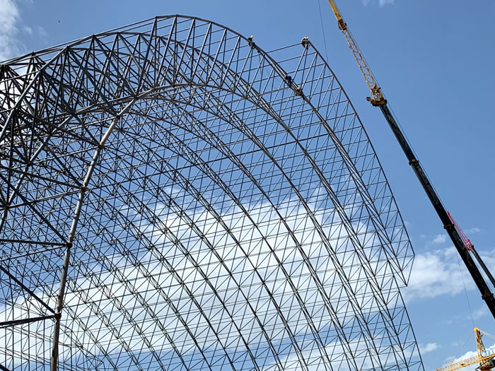 (2)网架加工前应对现场尺寸进行复测,确认无误后方可进行加工、安装;网架制作、运输、安装应遵守《空间网格结构技术规程》JGJ7-2010、《钢网架海南螺栓球节点》JG/T 10-2009、《钢网架海南螺栓球节点用高强度螺栓》 GB/T 16939-2016、《海南钢结构海南工程海南施工规范》 GB50755-2012、《海南钢结构海南工程海南施工质量验收标准》 GB50205-2020。